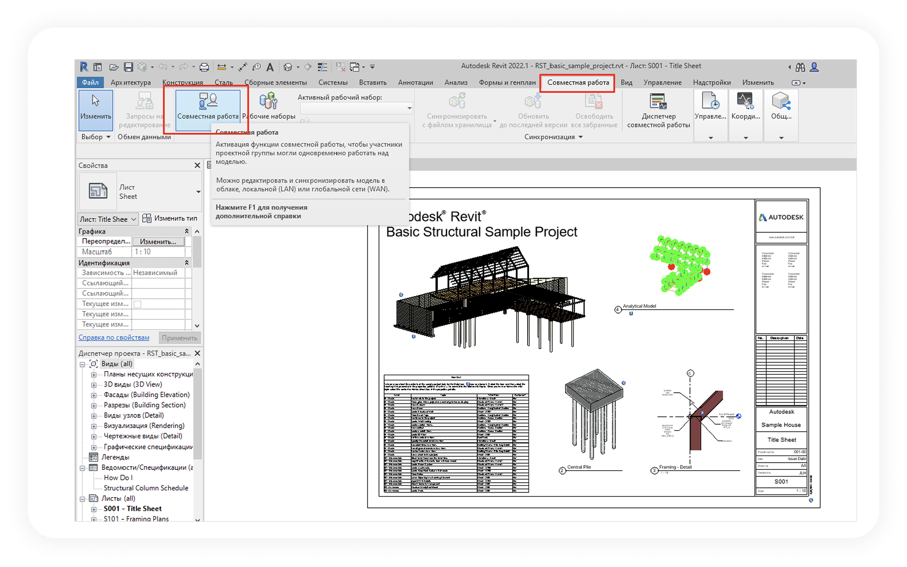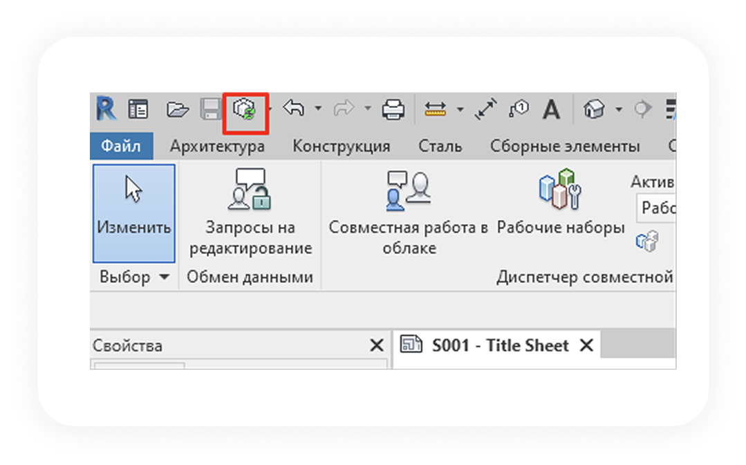 Перейдите на вкладку «Совместная работа» в верхнем меню Revit.
