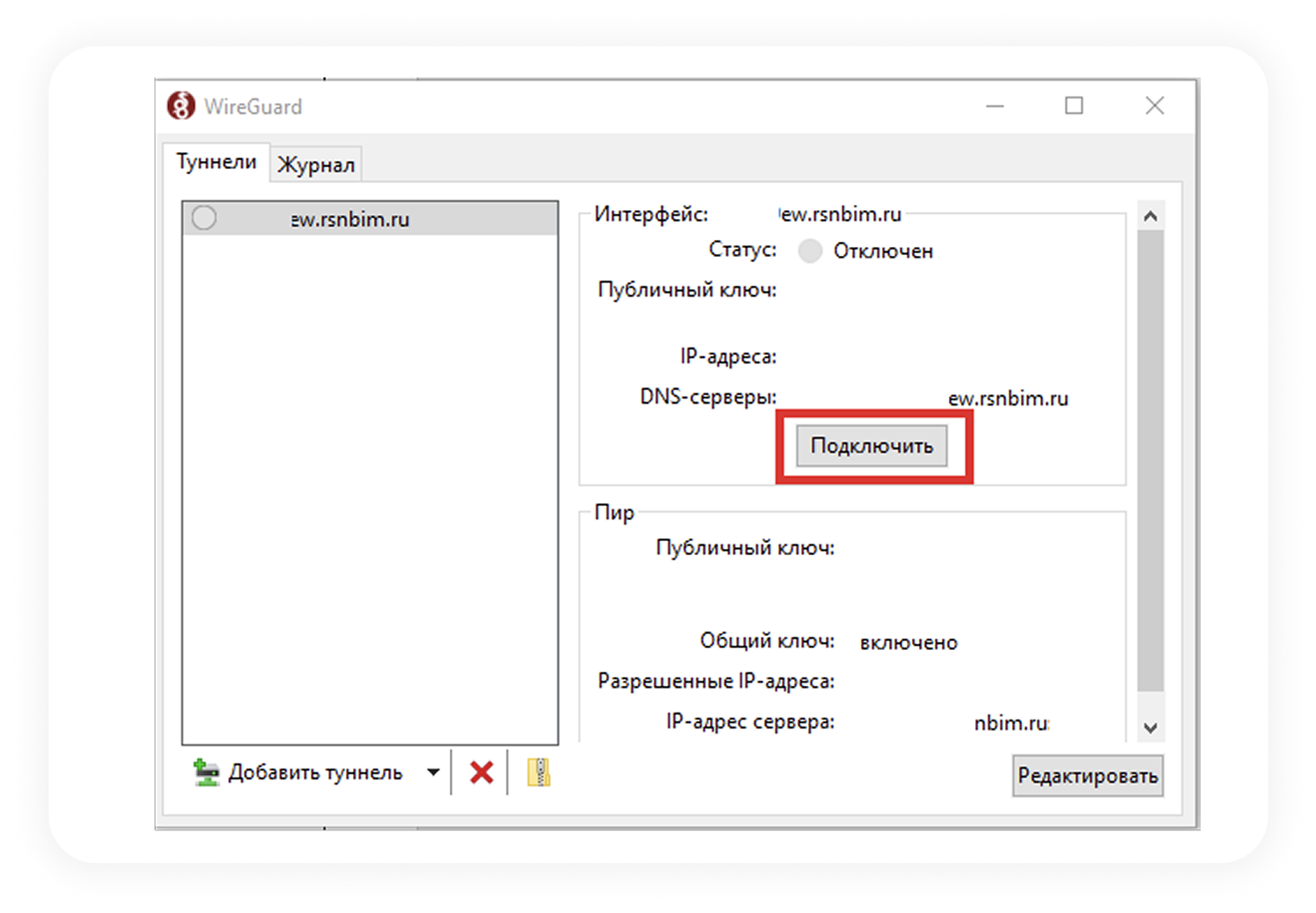 Нажмите кнопку «Подключить».