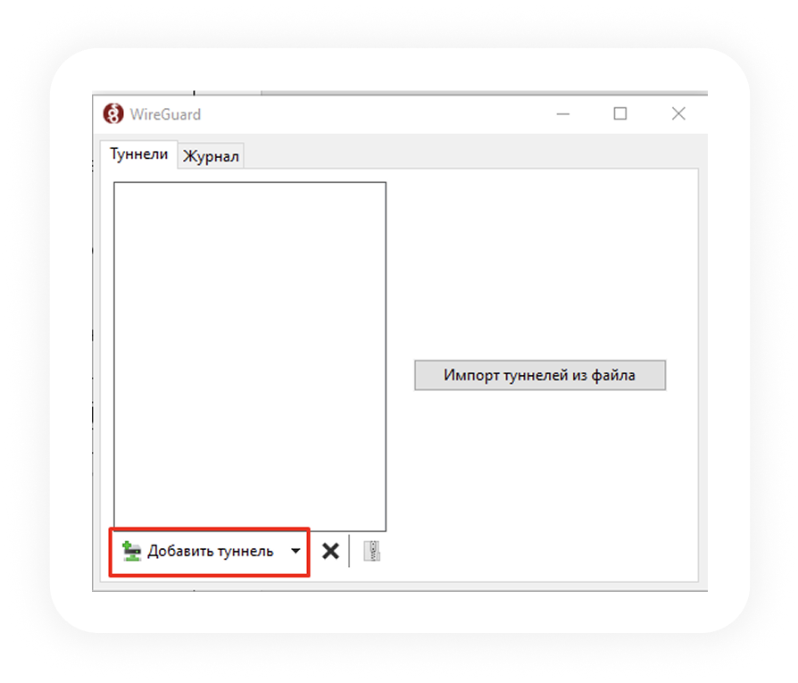 Откройте приложение WireGuard и нажмите «Добавить туннель» и выберите архив из письма.