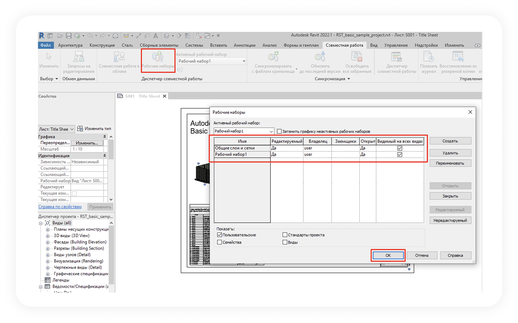 Проверяем, что стала активна кнопка «Рабочие наборы»